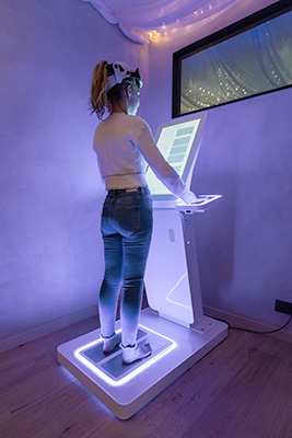 Je staat met blote voeten op meetplaten.